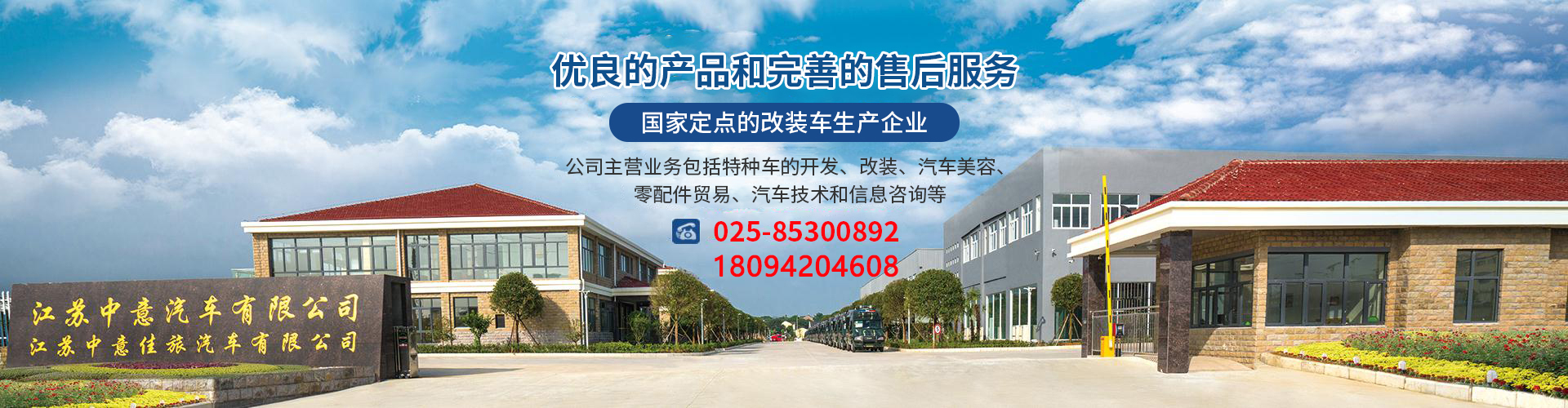 江苏中意汽车有限公司成立于1999年,是国内定点的改装车生产企业,公司主营业务包括特种车的开发、改装、汽车美容、零配件贸易、汽车技术和信息咨询等。公司目前已经通过了ISO9001和GJB9001C质量管理体系,拥有100多个改装车品种,包括救护车、旅居车、商务车、通信车、电源车(20KW-2000KW)、食品检测车、应急抢险车、警用车、军用车等。